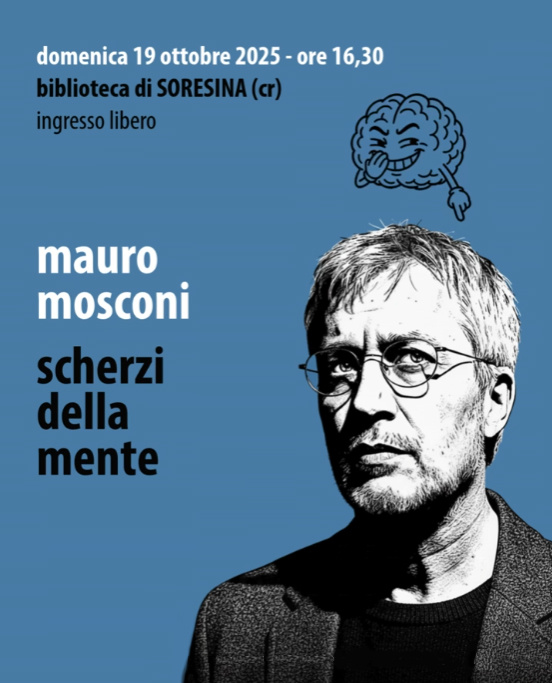 19 ottobre 2025, Mauro Mosconi parla di Scherzi della mente: i bias cognitivi che ci portano a prendere decisioni senza senso... convinti di aver fatto la scelta giusta, presso la Biblioteca di Soresina (CR).