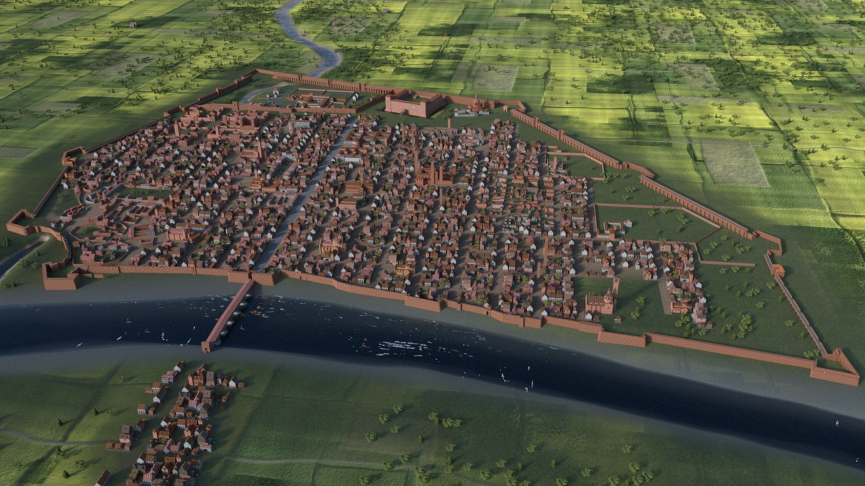 1) a 3D reconstruction of the whole city of Pavia in the 16th century